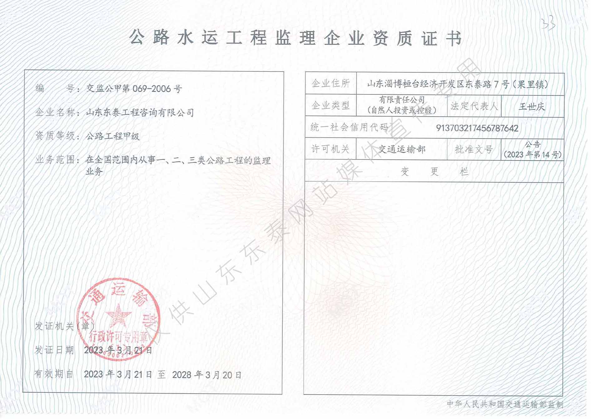 交通运输部公路工程监理甲级
