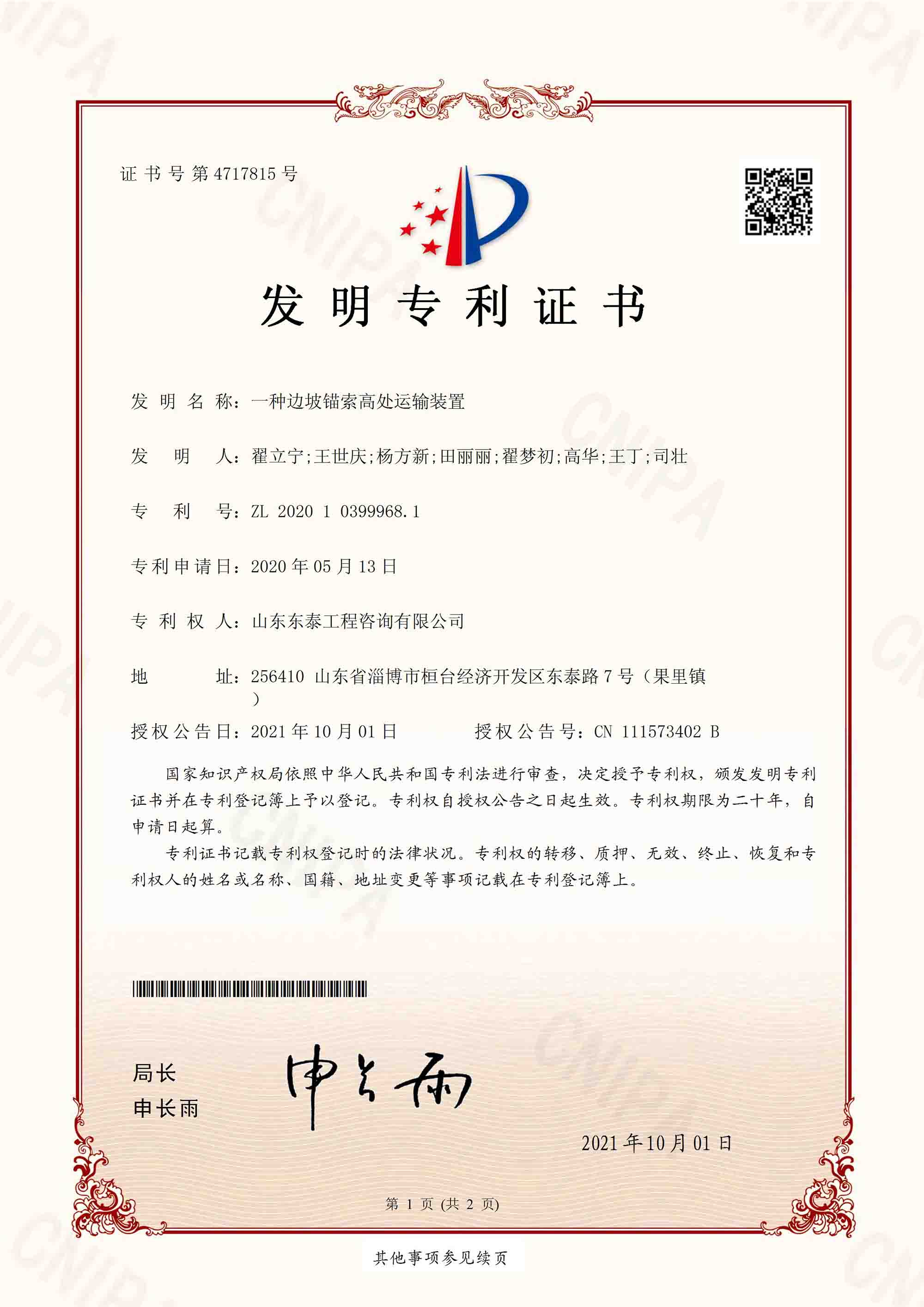 article------>{"id":6507,"cid":10,"subCid":"","title":"发明专利:一种边坡锚索高处运输装置","shortTitle":"","tagId":"","attr":"","articleView":"","source":"","author":"","description":"...","img":"/public/uploads/default/2024/12/31/1735620279792_source_190021发明:一种边坡锚索高处运输装置.jpg","content":"<p style=\"text-align: center;\"><img src=\"/public/uploads/default/2024/12/31/1735620286000_source_mceu_89229618151735620277608.jpg\"></p>","orderBy":null,"status":0,"pv":554,"link":"","createdAt":"2024-11-01 00:00:00","updatedAt":"2025-07-09 07:02:09","department":null,"field":{},"tags":[]}